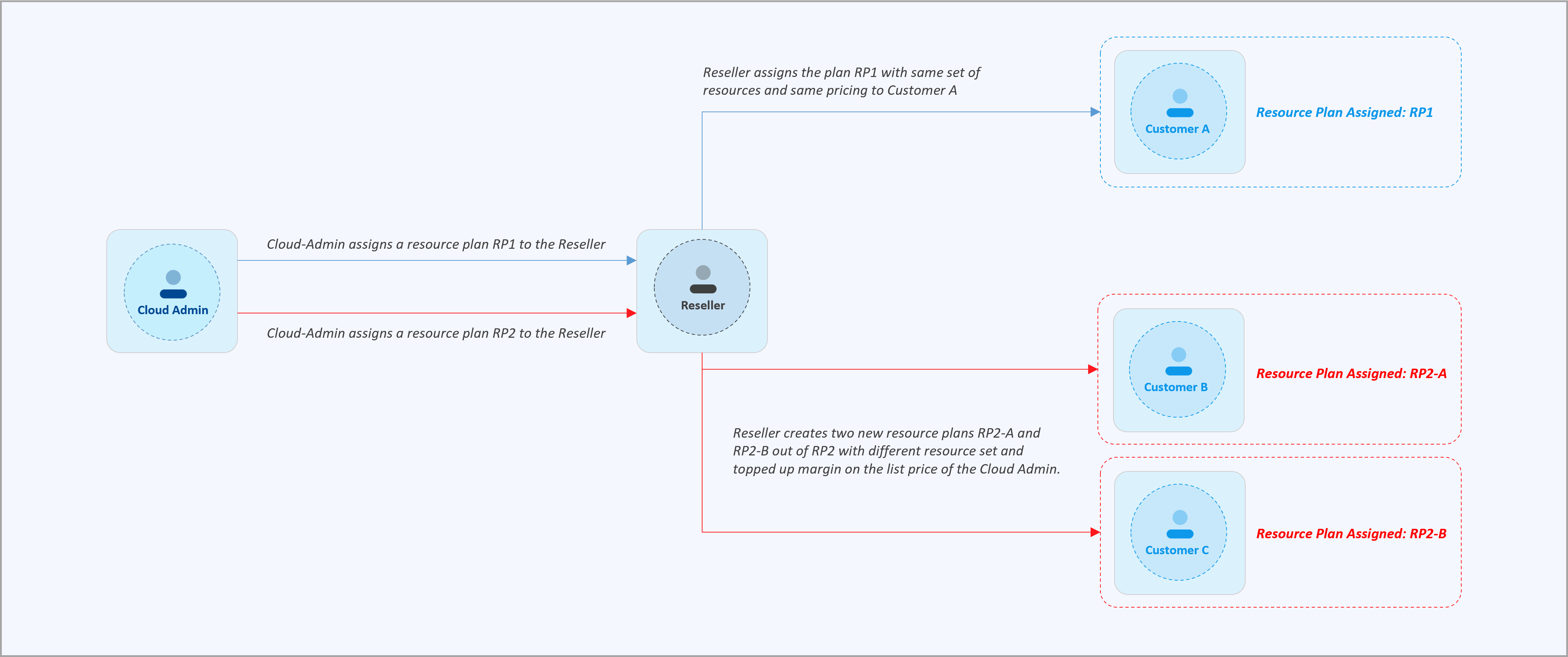Resellers have the ability to adjust resource plans allocated from Cloud-Admin based on their business needs or pass on the exact plans, including pricing and resource allocations, without any modifications.