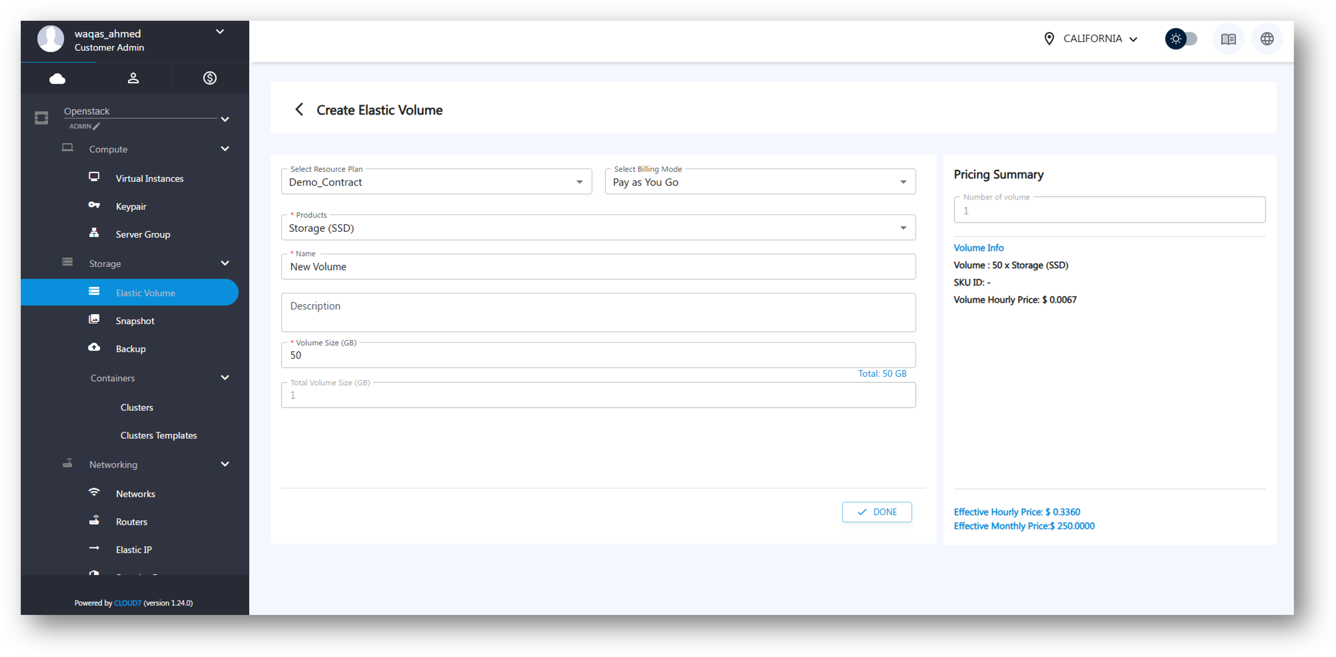 - Select Resource Plan: Choose the appropriate plan for volume allocation.
