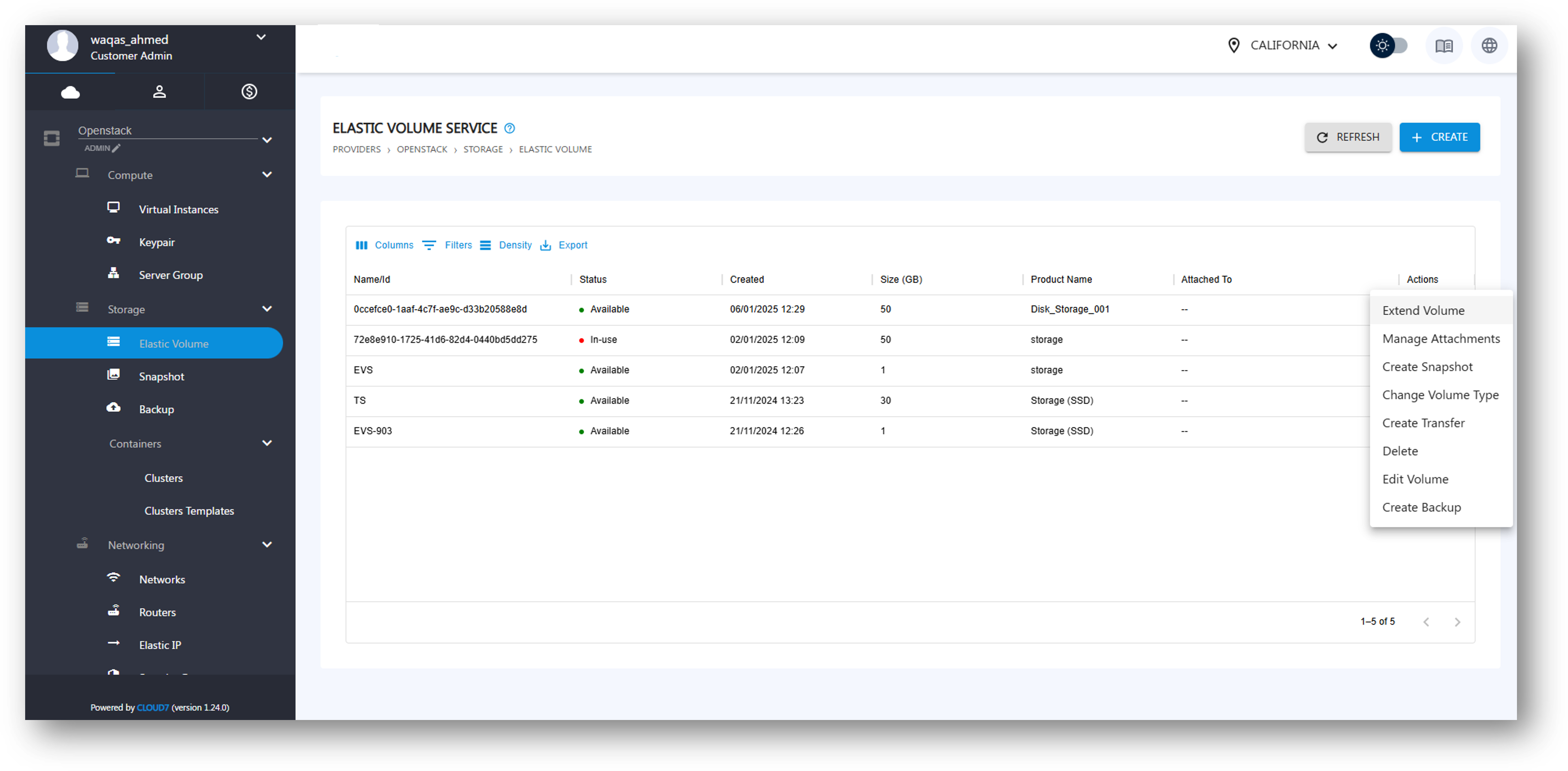 Elastic Volumes in Cloud7 provide scalable and persistent block storage for instances. Customers can create, manage, and attach volumes to instances, allowing for flexible storage expansion as per business requirements. This guide covers listing, adding, editing, and deleting Elastic Volumes within the customer interface of Cloud7.