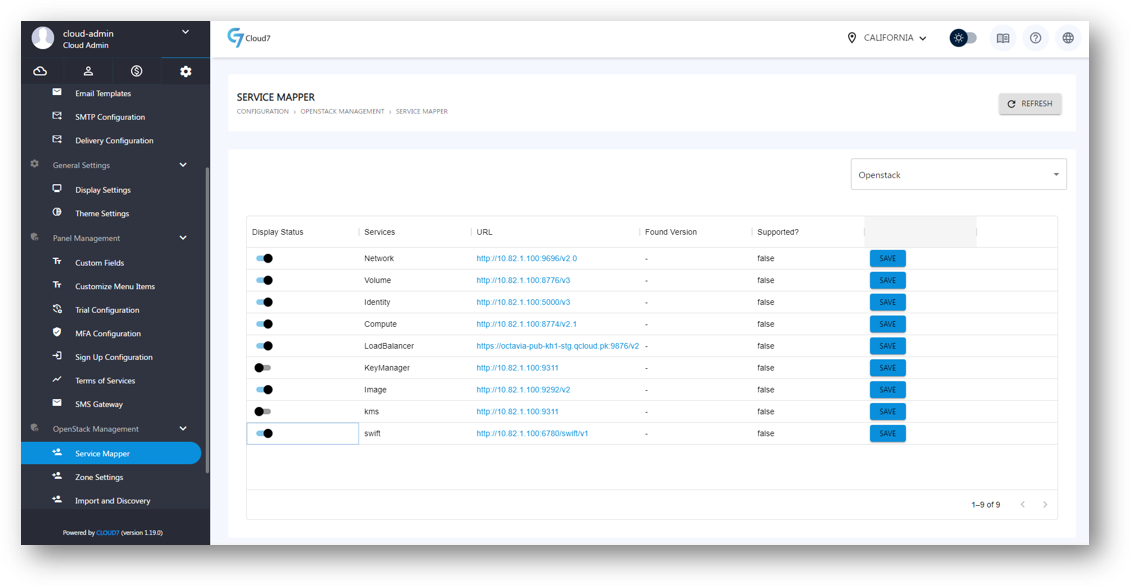 - To view the OpenStack Service Mapper section, login as Cloud-Admin (or a staff-member with required privileges) and navigate to the menu Configuration >> OpenStack Management >> Service Mapper.