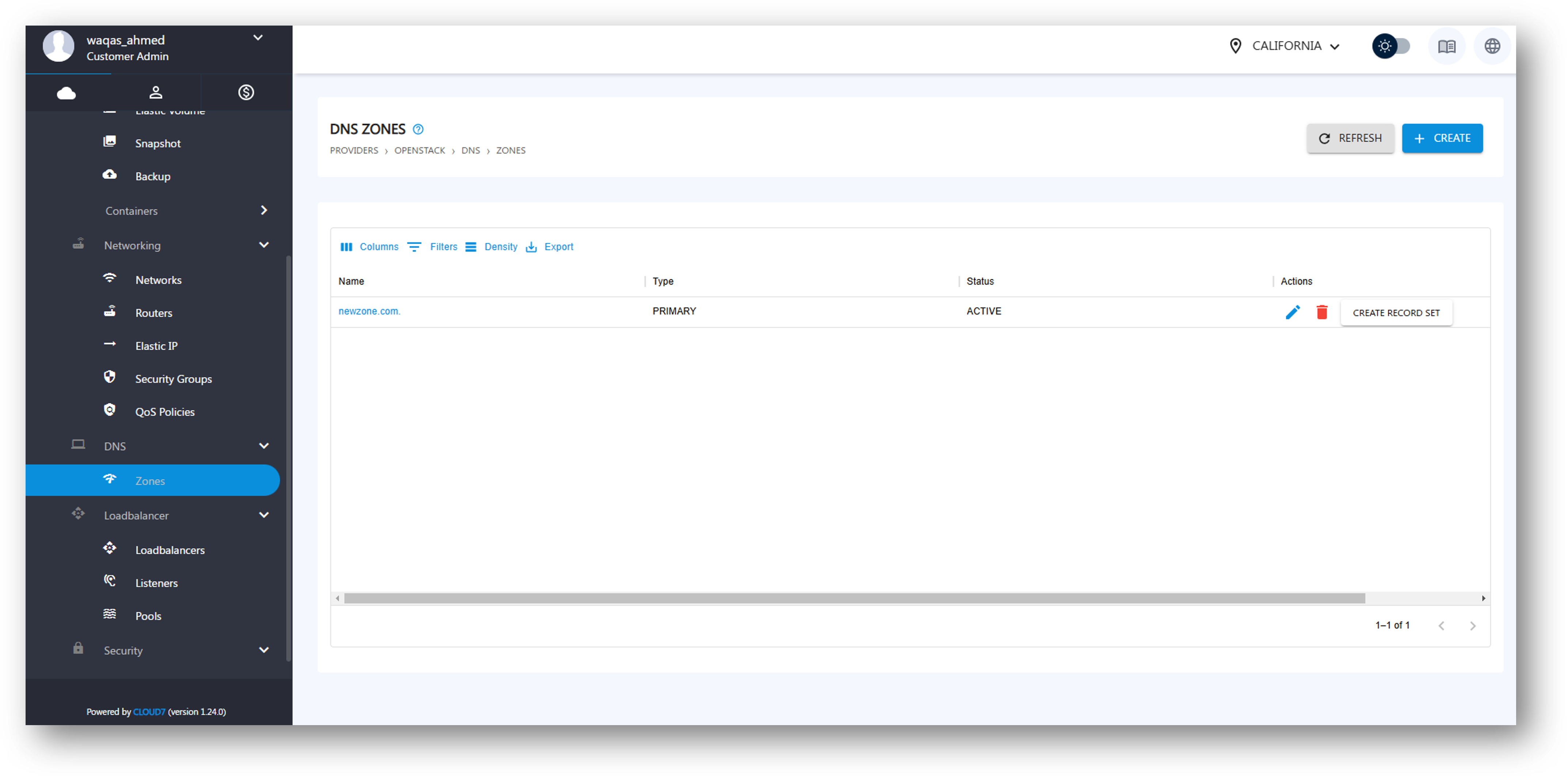 - Click Create to save the new DNS Zone.