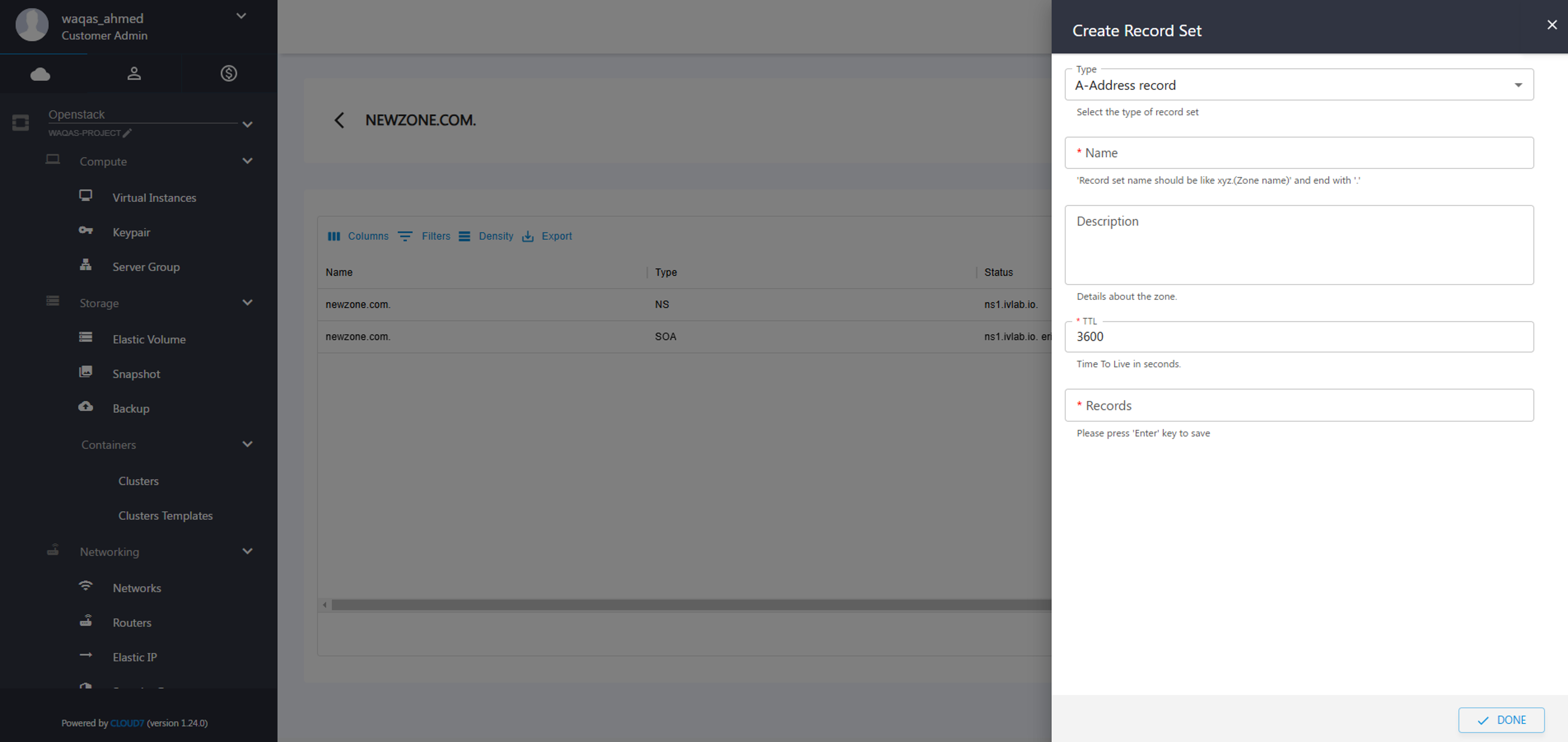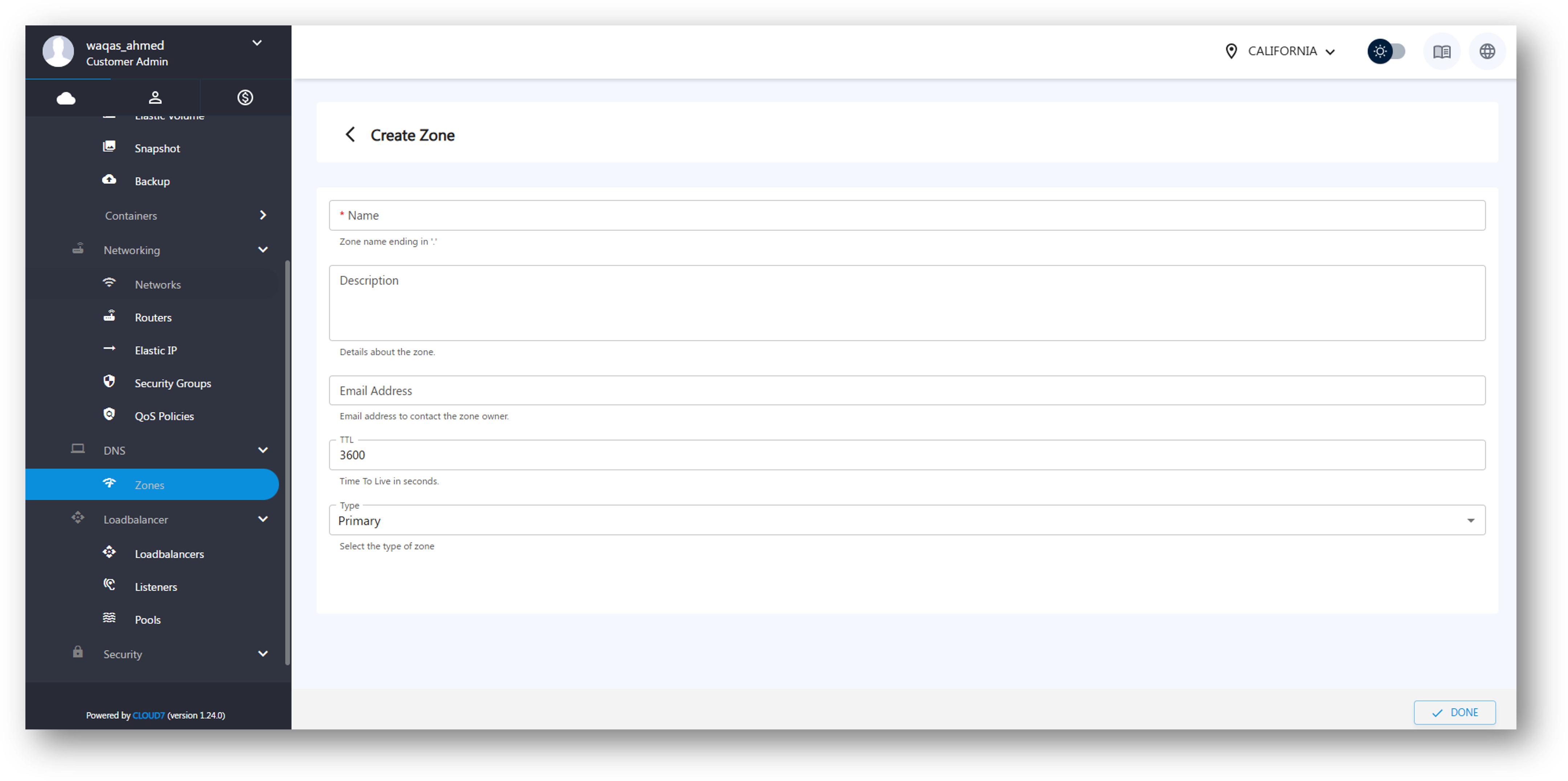 To create a new DNS Zone: