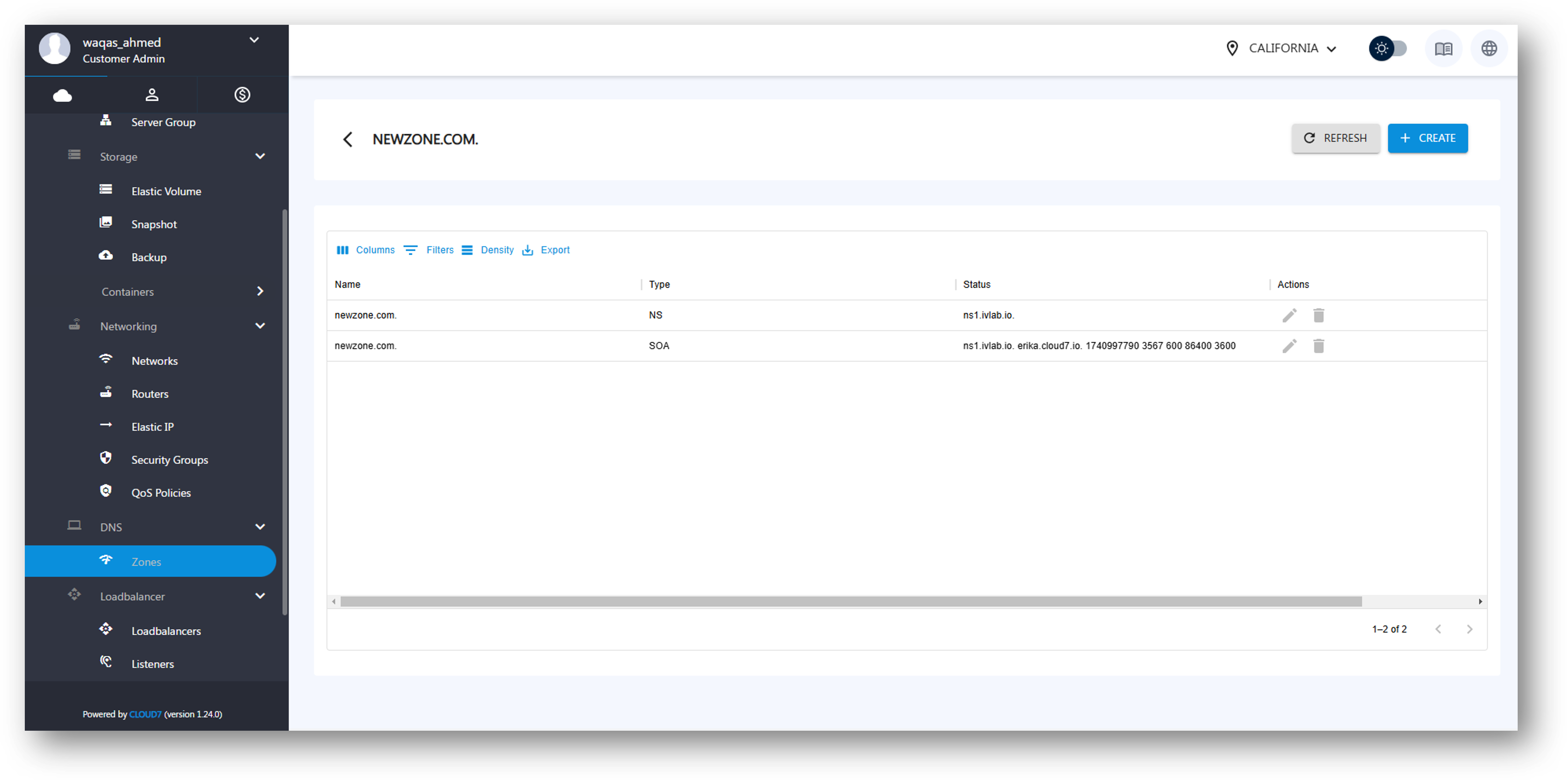 DNS (Domain Name System) Zones in Cloud7 allow customers to manage their domain configurations effectively. A DNS zone is a segment of the DNS namespace that is managed by a specific organization or administrator. Customers can create, edit, and delete DNS zones, as well as manage DNS records within each zone.