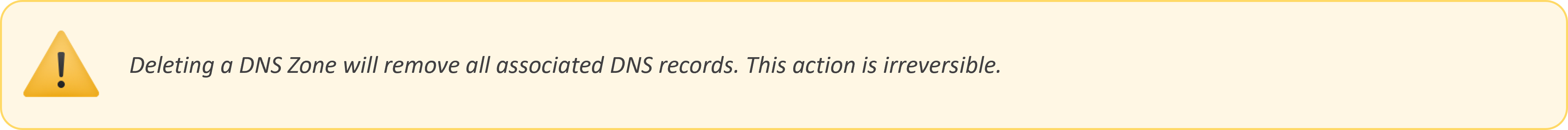 - Actions – Provides options to manage, edit, or delete the DNS Zone.