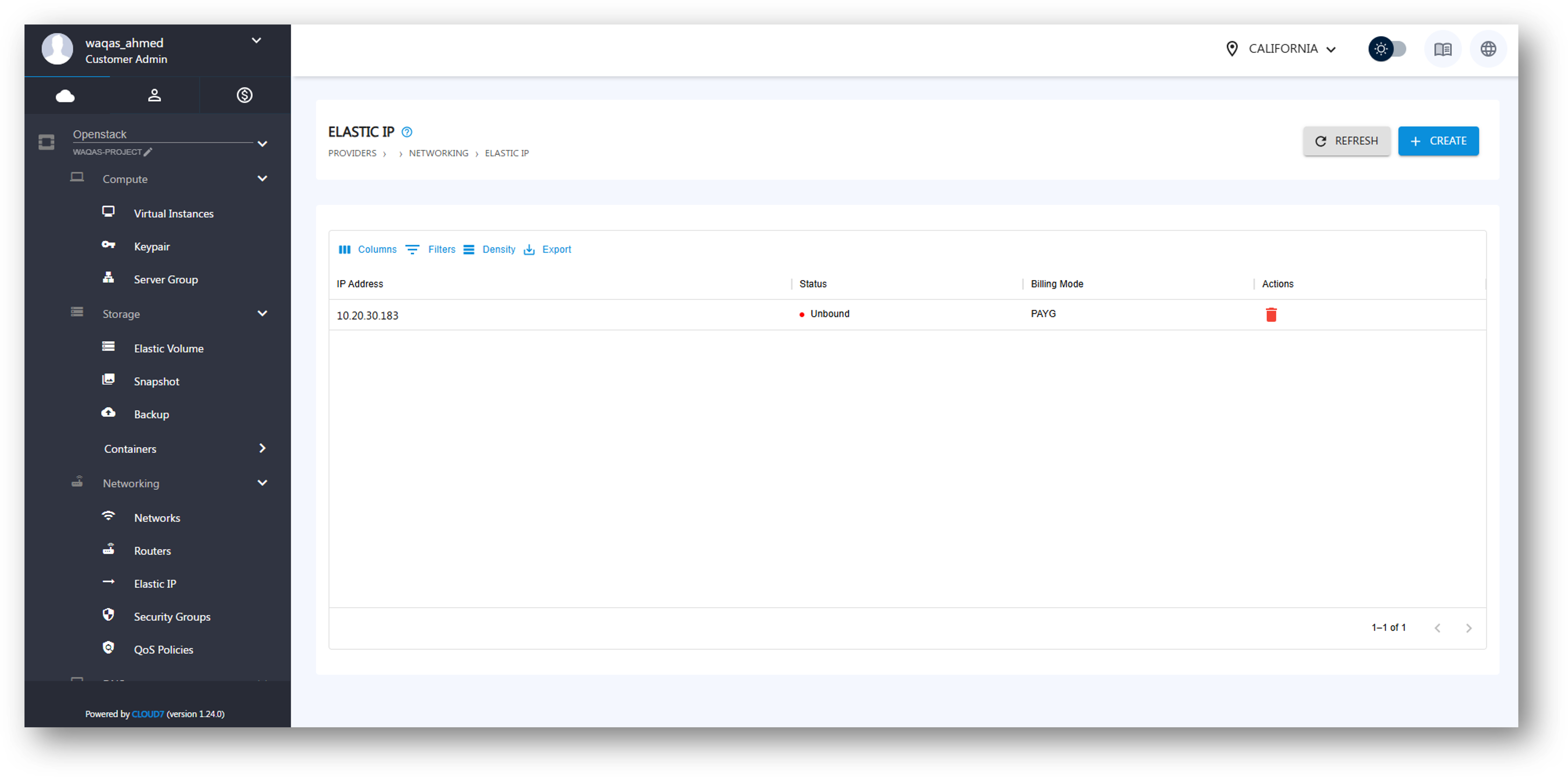 - Navigate to Providers >> OpenStack >> Networking >> Elastic IP.