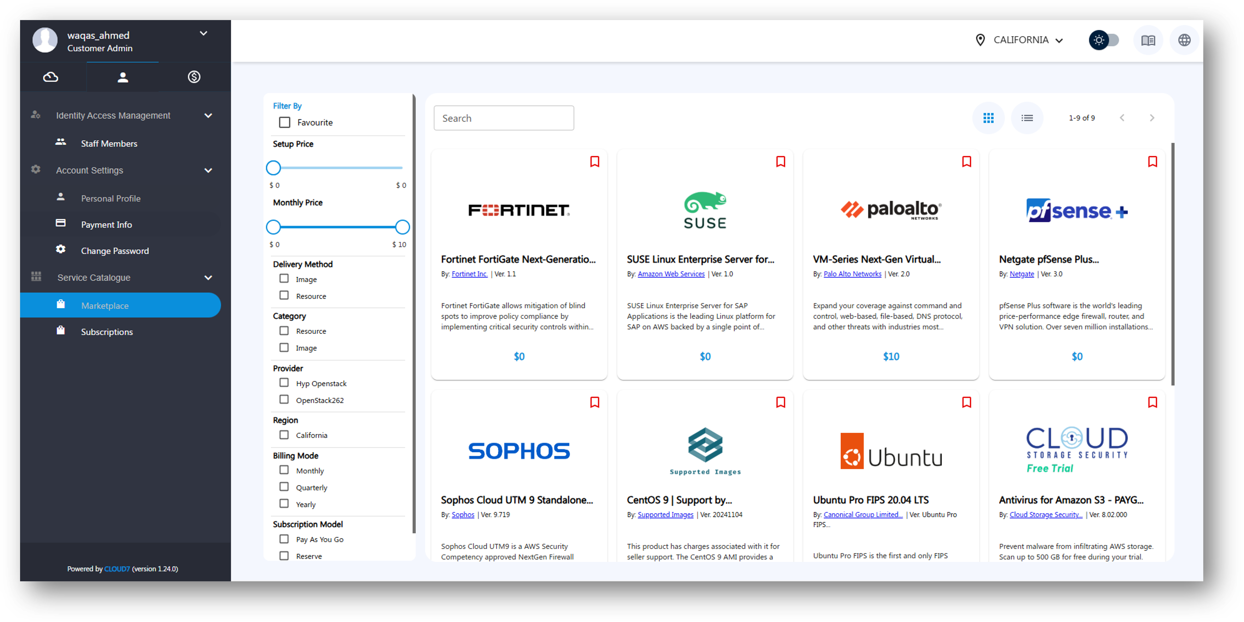 - Log in to Cloud7 and navigate to the Marketplace section from the main dashboard.