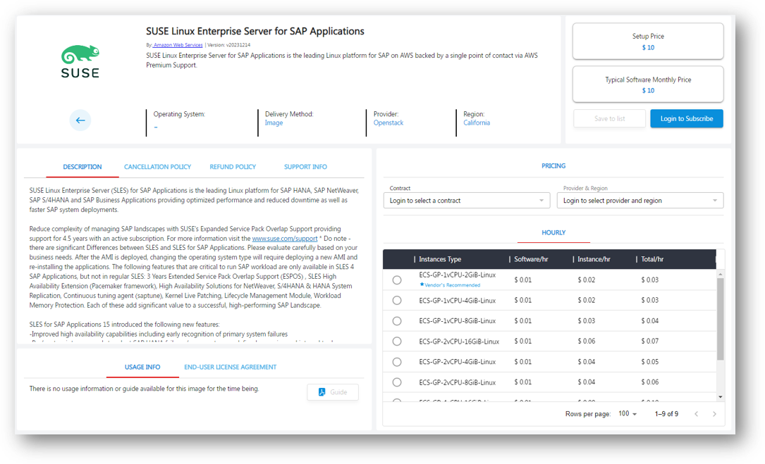 - Click on any offering to view its details, including pricing, specifications, and deployment options.
