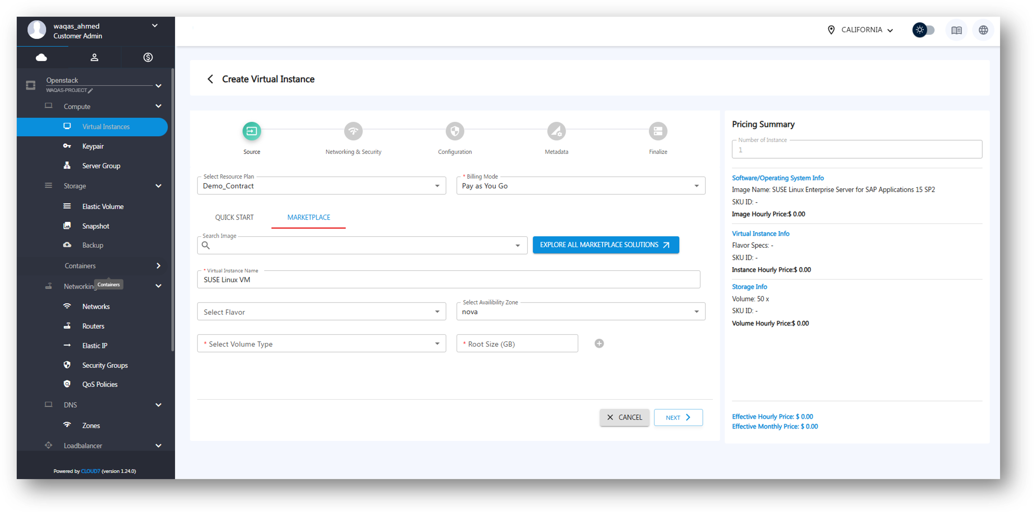 Unlike traditional marketplaces with a cart system, Cloud7 Marketplace enables direct deployment. When a customer selects an offering, they are guided to the relevant provisioning page, where the selected product or service is pre-populated for deployment.